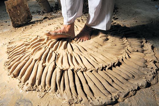 기포를 없애기 위해 도공의 발 아래 짓밟혀야 하고